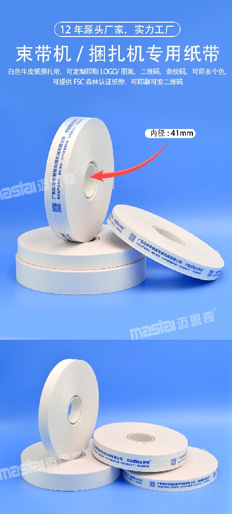 紙帶/膜帶表面可定制印刷LOGO/圖案,二維碼,條紋碼,最多可印4個色,F(xiàn)SC森林認證,可印刷可變二維碼
