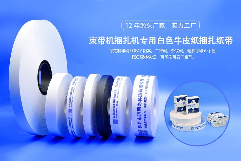 邁思奇機(jī)器可采用牛皮紙?jiān)鷰Щ蛘逴PP膜帶,耗材寬度支持2cm、3cm和5cm,也可根據(jù)客戶需求定制使用其他寬度扎帶的機(jī)器,個(gè)性化定制這是別廠商無(wú)法做到的。